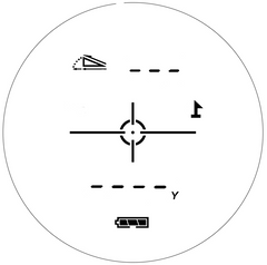 2.Placing the aiming circle (located in the center of view) on a target over than 5 yards away, press "POWER" button and release quickly. The range and slope compensation distance,angle will be displayed on LCD.
