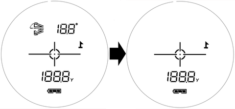 Press and hold the "MODE" button for 3 seconds.The data displayed at the top will disappear, which is designed for golf tournament. If you want to turn on the slope mode, just press the "MODE" button again for 3 seconds.