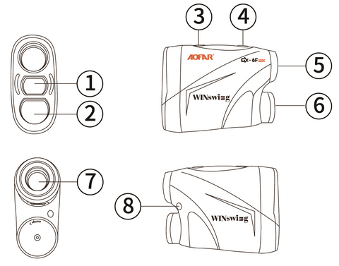 (The laser rangefinder will auto power-off if no operation within 8 seconds.)