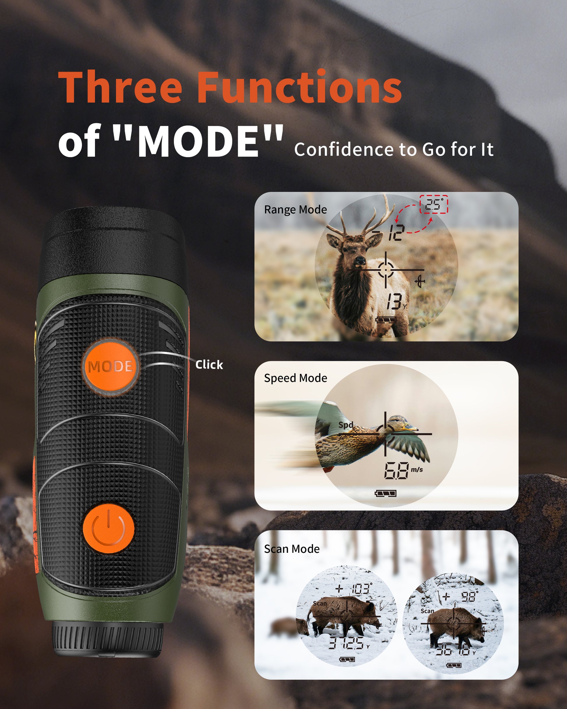 Hand and compact range finder. Was ideal for the range and even a bit of bird watching. The setup is easy to use. It's light and feels robust. Comes with a good quality pouch and comes well packaged. It quickly tells you the range of objects however I did not manage to track speed of the birds as I was too slow to keep up. Overall handy bit of kit to take with you.
